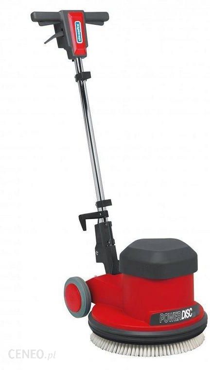 Szorowarka jednotarczowa Power Discs Ls Szorowarka jednotarczowa Power Discs Ls to urządzenie czyszczące do użytku profesjonalnego. Sprzęt wykonany jest z wysokiej jakości tworzywa, aby zapewnić długą i bezawaryjną pracę. Model został zaprojektowany tak, aby praca z nim była wygodna i wymagała jak najmniej wysiłku, nawet przy gruntownych, intensywnych pracach. Wygodny uchwyt o bezstopniowej regulacji oraz odpowiednie wyważenie sprawiają, że operowanie tą szorowarką jest wyjątkowo komfortowe. Wygodne koła jezdne ułatwiają jej prowadzenie, a dzięki wykorzystaniu paska wieloklinowego do napędu szczotki urządzenie jest także bardzo ciche. Specyfikacja techniczna: Kolor: czerwony Waga: 30 kg Moc: 1200 W Zasilanie: 230 V Obroty: 155 obr./min Moment obrotowy: 68 Nm Siła wibracji uchwytu: <2,5 m/s2 Poziom hałasu: 55 dB Szerokość pracy: 440 mm Wysokość pracy: 370 mm Długość przewodu: 12,5m Zastosowanie: Produkt do użytku przemysłowego oraz profesjonalnego. Przeznaczony do czyszczenia różnych powierzchni w restauracjach, sklepach, szkołach, lotniskach, biurach, hotelach, łazienkach, szatniach, zakładach produkcyjnych i innych.