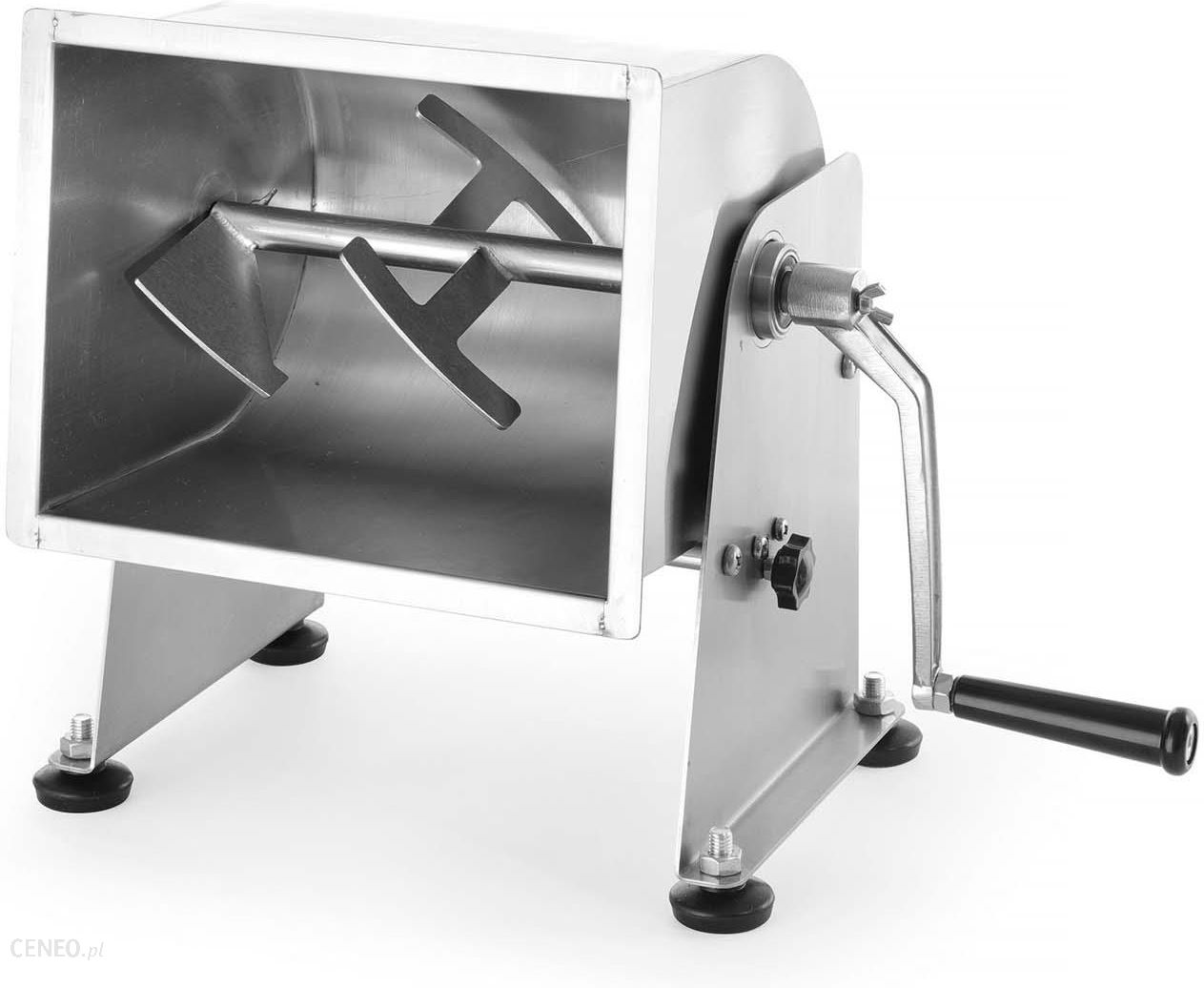 Urzadzenie dla małej produkcji wyrobów wedliniarskichCałosc wykonana ze stali nierdzewnej AISI 304Uchwyt korbki z odlewu aluminiumDzieza przechylna, ułatwiajaca wyjmowanie gotowego farszuPodwójne zabezpieczenie przed przypadkowych wychyleniem sie dzieżyNaped reczny za pomoca demontowanej korbkiW modelu 282168 brak przekładni, ilosc obrotów korbki równa sie ilości obrotów mieszadła w misieMozliwosc całkowitego demontazu dziezy i mieszadłaPokrywa uchwytem w zestawieBardzo proste w obsłudze i czyszczeniu