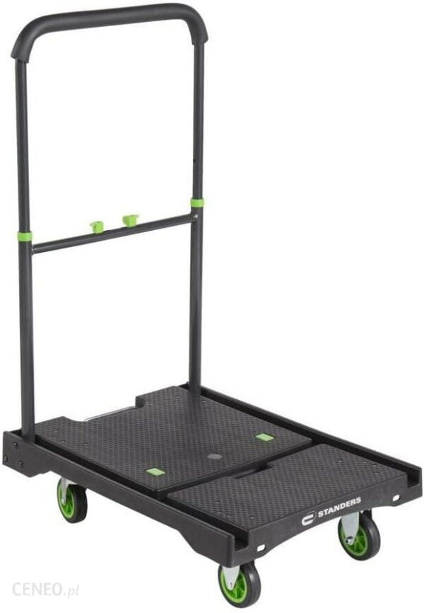 Maks. obciążenie (w kg): 100 Szerokość produktu po rozłożeniu (w cm): 49.5 Materiał wykonania: Stal Materiał platformy nośnej: Stal Wykończenie: Lakier proszkowy wygrzewany Platforma transportowa składana max. obciążenie 100 kg Standers to wytrzymała platforma transportowa o wszechstronnym zastosowaniu. Duża nośność przy niewielkiej wadze własnej sprawia, że wygodnie i bez problemu przetransportujesz nim przedmioty o masie nawet 100 kg. Lekka, aluminiowa konstrukcja pokryta farbą proszkową pozwala na użytkowanie produktu także na zewnątrz. Skrętne koła pozwalają na obracanie przewożonym ładunkiem nawet na niewielkiej powierzchni. Gumowana powierzchnia robocza zapobiega przesuwaniu się transportowanych przedmiotów. Dzięki niewielkim rozmiarom produktu po złożeniu, bez problemu zmieści się w piwnicy lub w garażu. Niezastąpiony podczas przeprowadzek, transportu lub codziennych prac warsztatowych. Specyfikacja techniczna Maks. obciążenie (w kg) : 100 Szerokość produktu po rozłożeniu (w cm) : 49.5 Materiał wykonania : Stal Materiał platformy nośnej : Stal Wykończenie : Lakier proszkowy wygrzewany Wysokość produktu po złożeniu (w cm) : 6.9 Składany : Tak Uchwyt z zabezpieczeniem : Nie Pompowane koła : Nie Regulacja wysokości : Tak Materiał kół : Elastomer termoplastyczny Ilość kółek : 4 Średnica kół (w mm) : 100.0 Platforma antypoślizgowa : Tak Waga : 9.9 Świadectwo zgodności : Tak Deklaracja zgodności : Tak Gwarancja (w latach) : 5 Marka handlowa : STANDERS